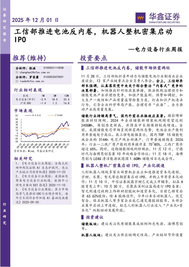 华鑫证券:电力设备行业周报:工信部推进电池反内卷,机器人整机密集启动IPO.pdf