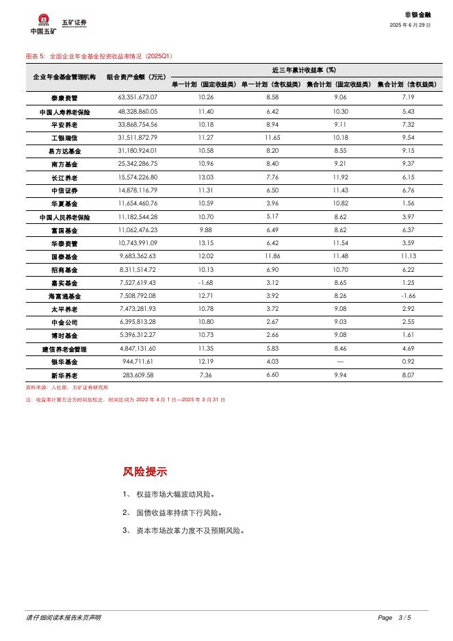 五矿证券:非银金融2025Q1企业年金数据:首次公布“近三年累计收益率”,健全长周期考核制度破局.pdf