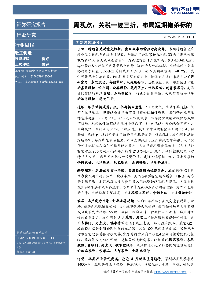 信达证券:关税一波三折,布局短期错杀标的轻工制造.pdf
