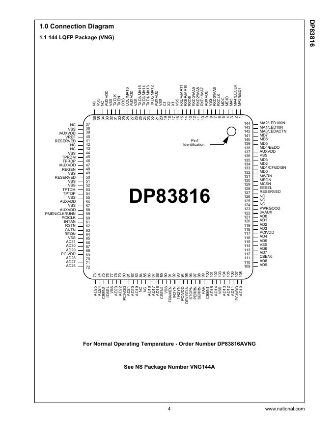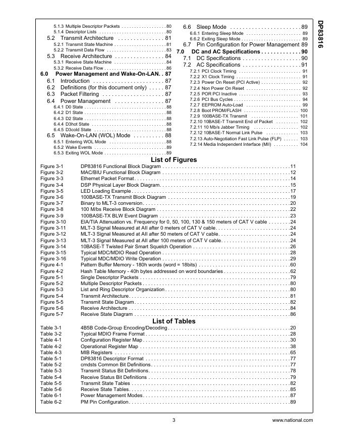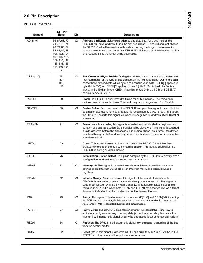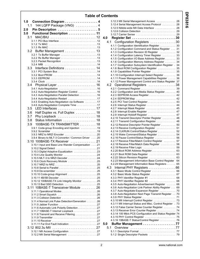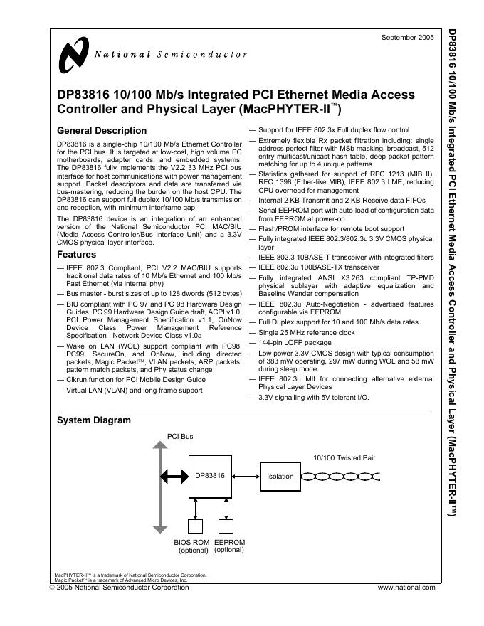 National Semiconductor DP83816 10/100 Mb/s Integrated PCI Ethernet Media Access Controller and Physical Layer (MacPHYTER-II™ ) 数据手册.pdf