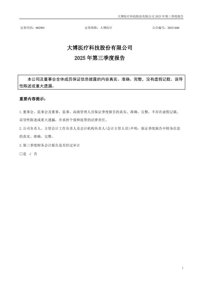 002901-大博医疗:2025年三季度报告.pdf