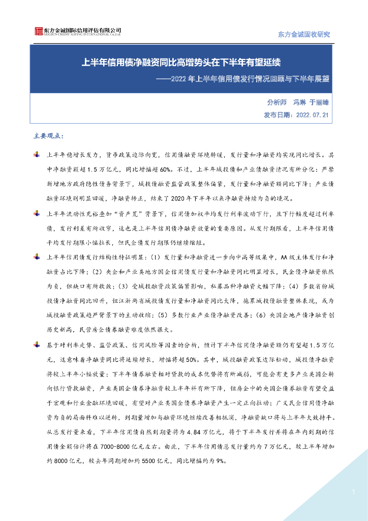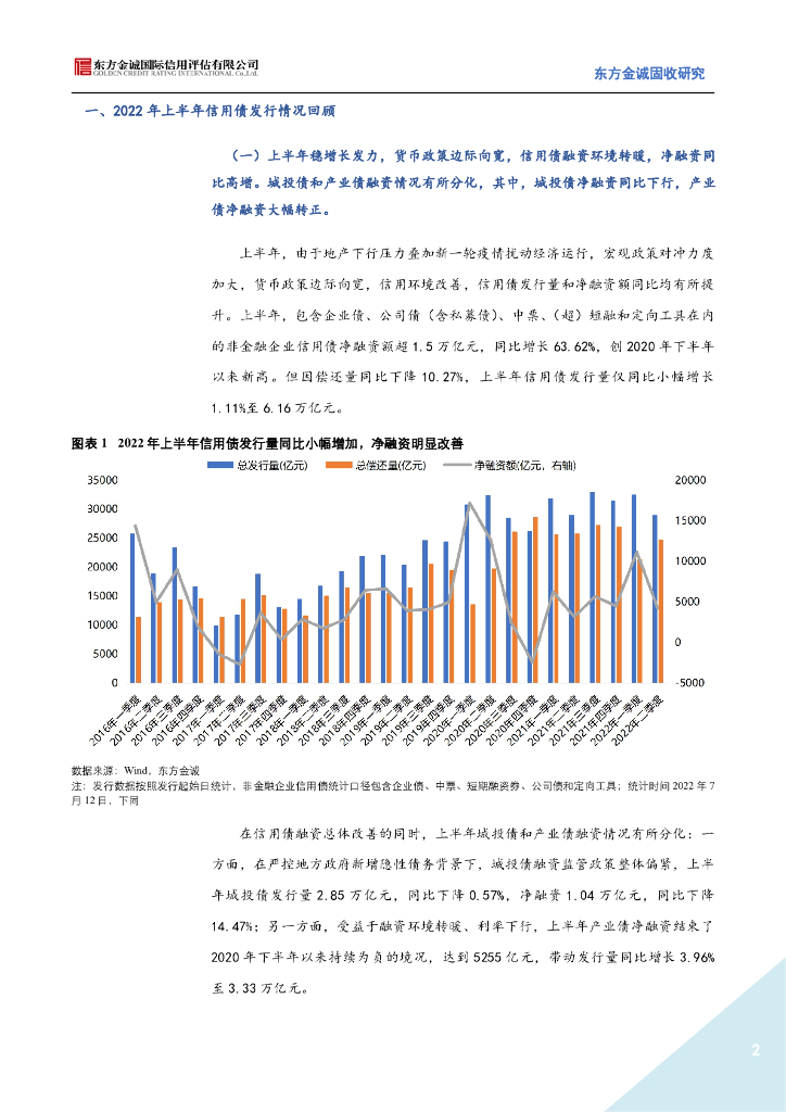 东方金诚: 2022年上半年信用债发行情况回顾与下半年展望-上半年信用债净融资同比高增势头在下半年有望延续.pdf