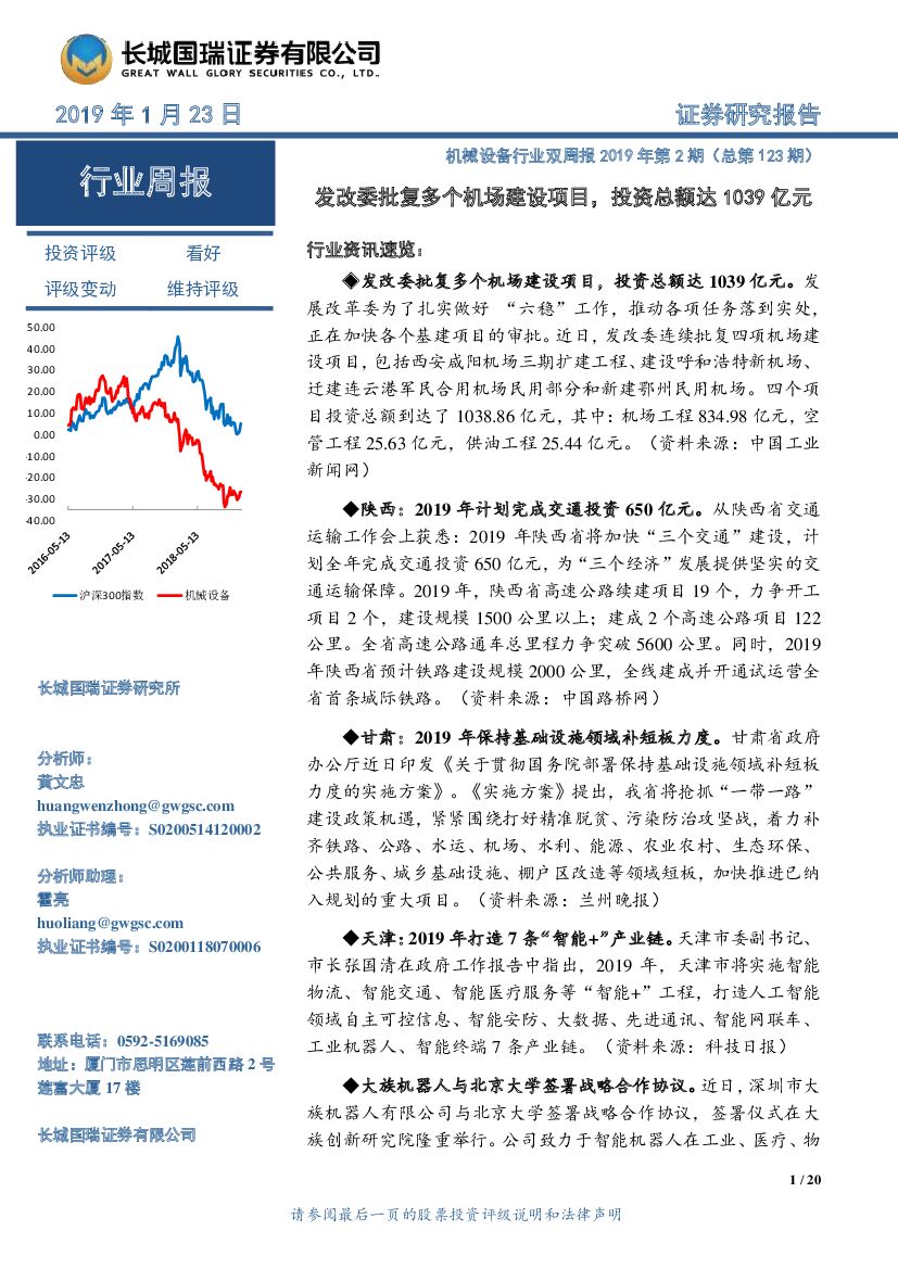 长城国瑞证券:机械设备行业双周报2019年第2期(总第123期):发改委批复多个机场建设项目,投资总额达1039亿元.pdf