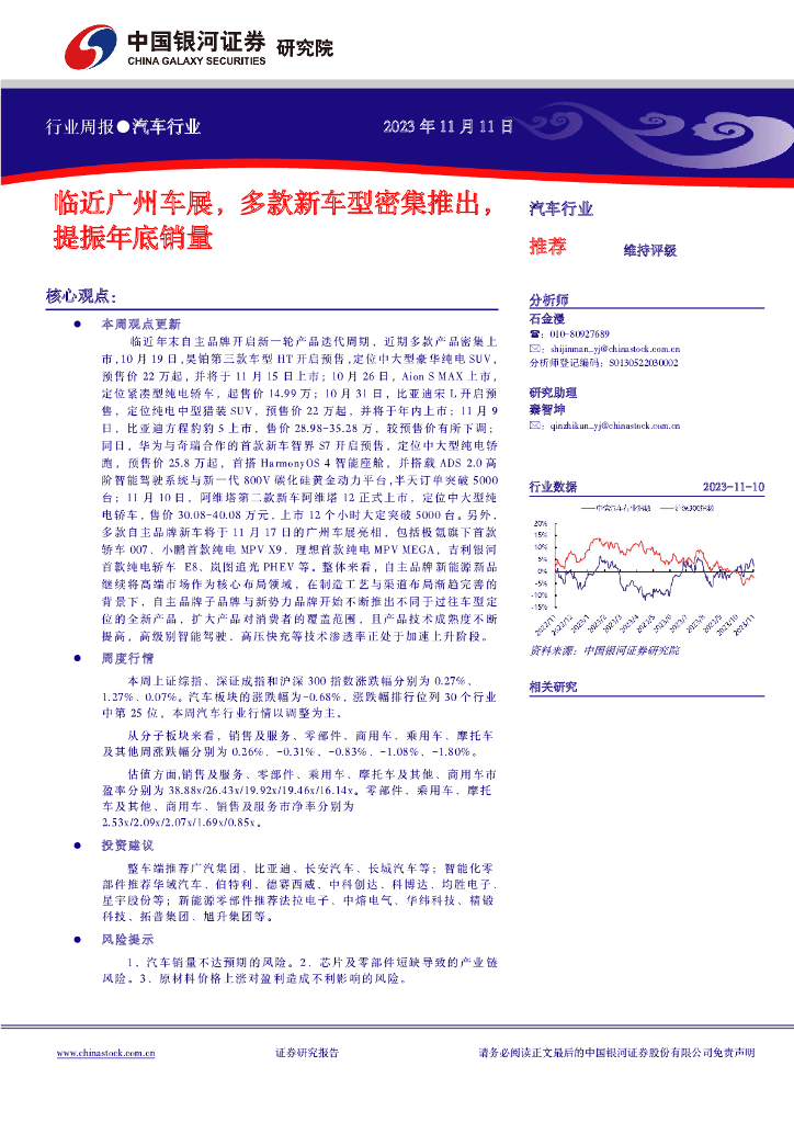 中国银河:汽车行业行业周报:临近广州车展,多款新车型密集推出,提振年底销量.pdf