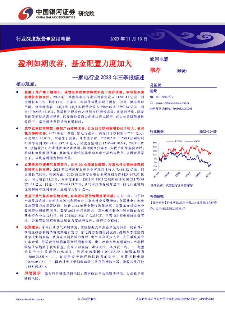 中国银河:家电行业2023年三季报综述:盈利如期改善,基金配置力度加大.pdf