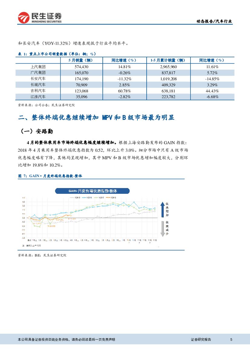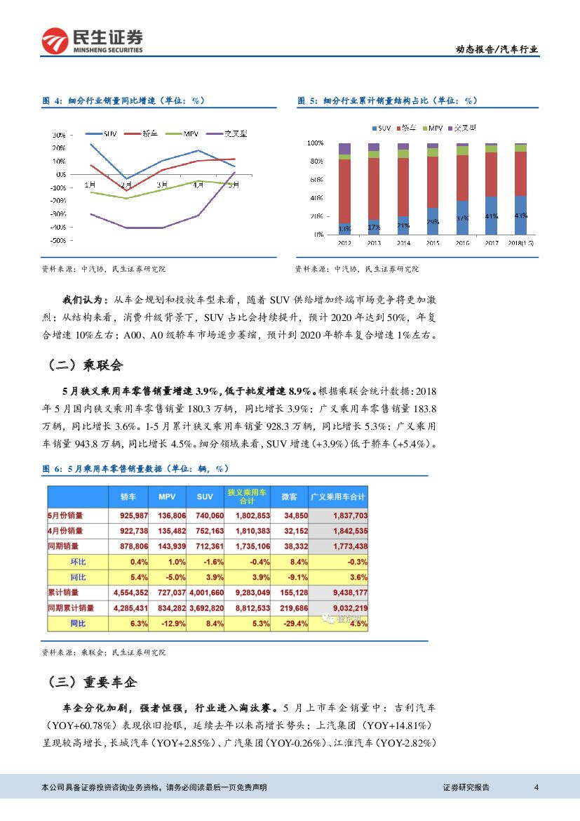 民生证券:汽车数据监控系列之2018年5月乘用车:整体平稳增长 轿车增速高于SUV.pdf