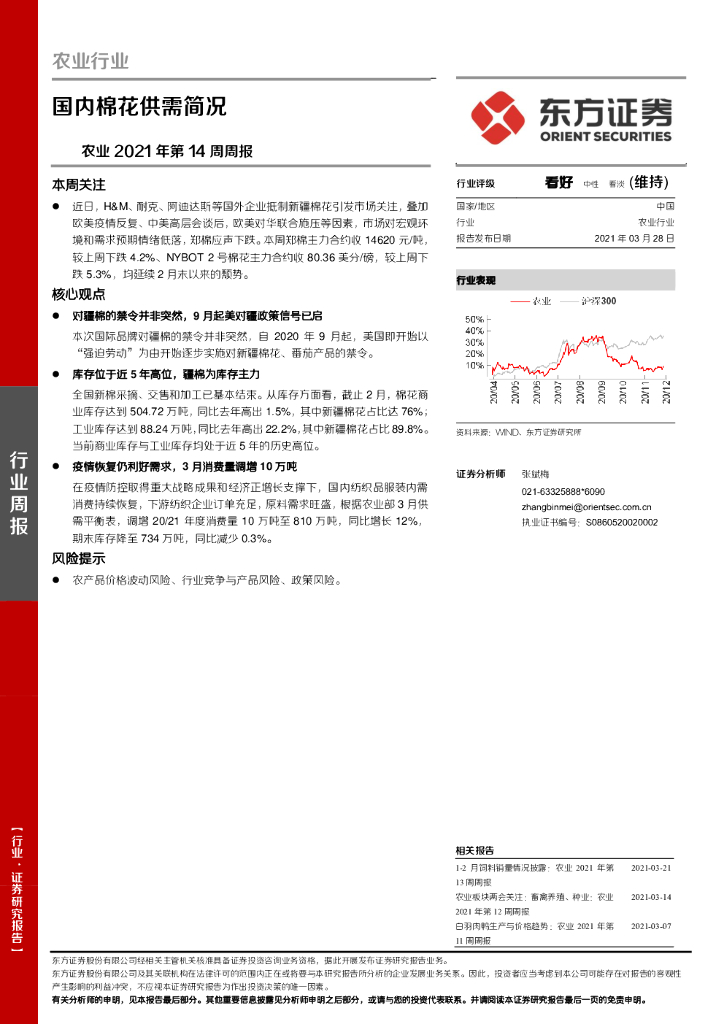 东方证券:农业2021年第14周周报:国内棉花供需简况.pdf