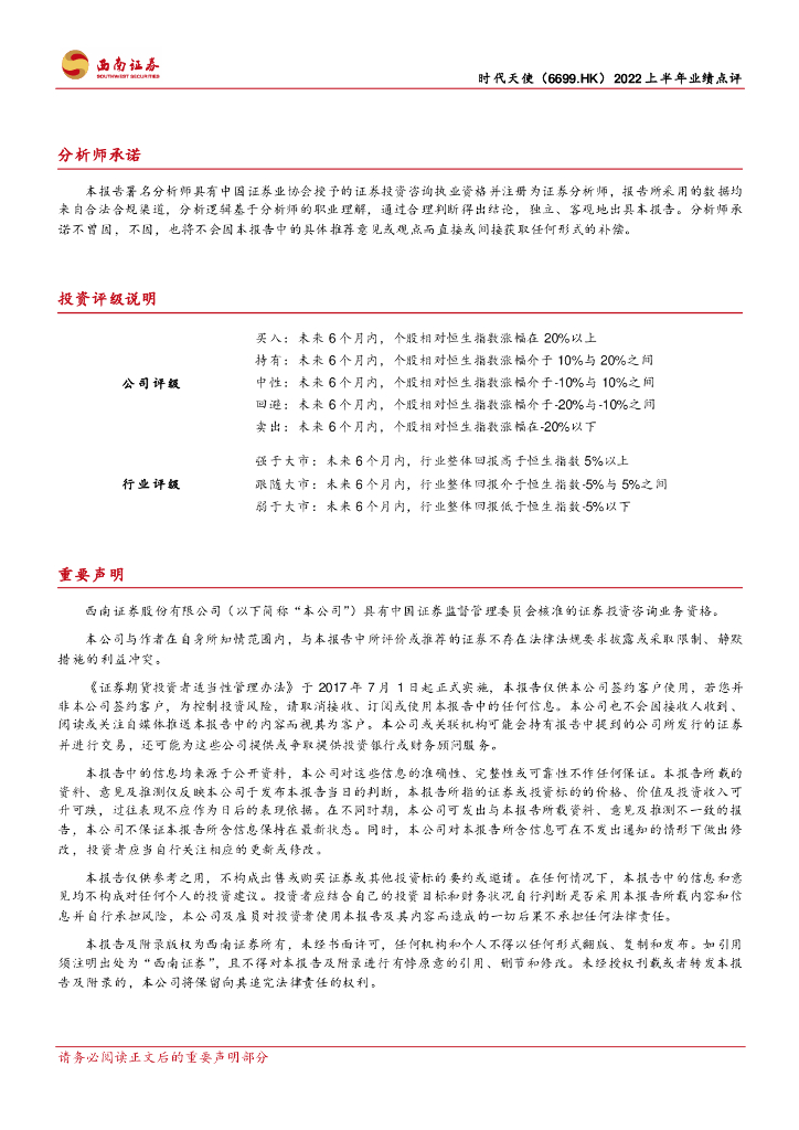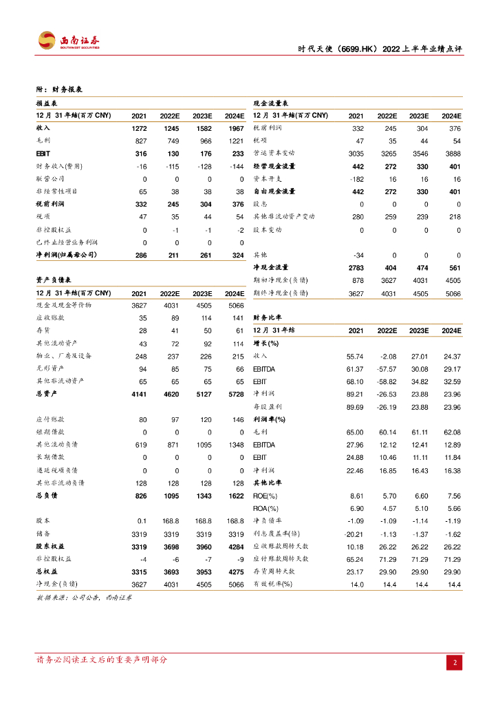 西南证券:时代天使(06699)港股公司研究报告-疫情影响业绩承压,未来有望加速恢复.pdf