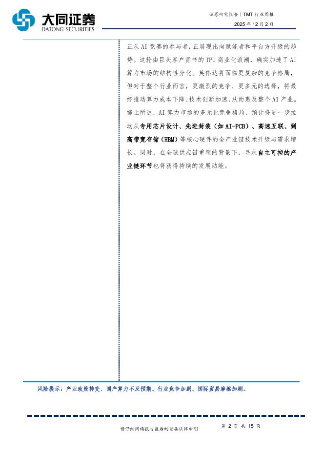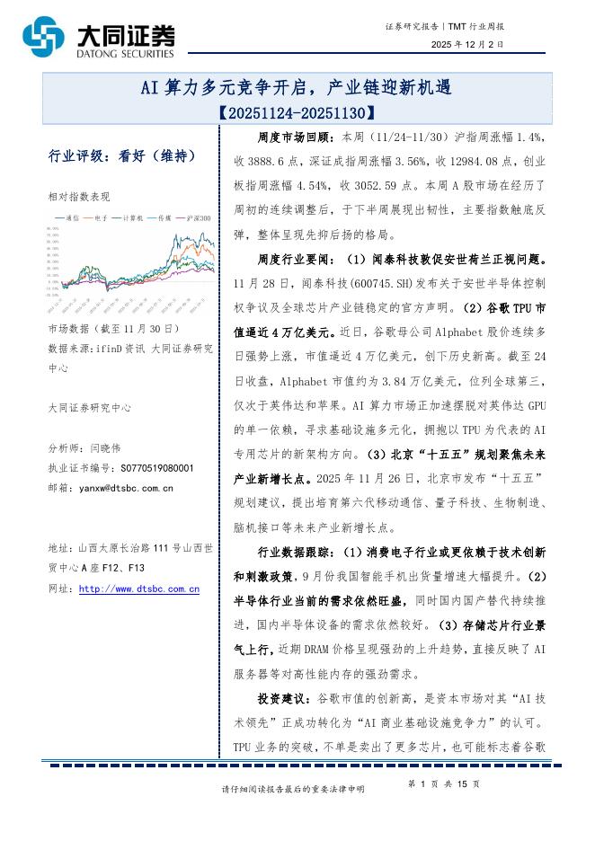 大同证券:TMT行业周报:AI算力多元竞争开启,产业链迎新机遇.pdf