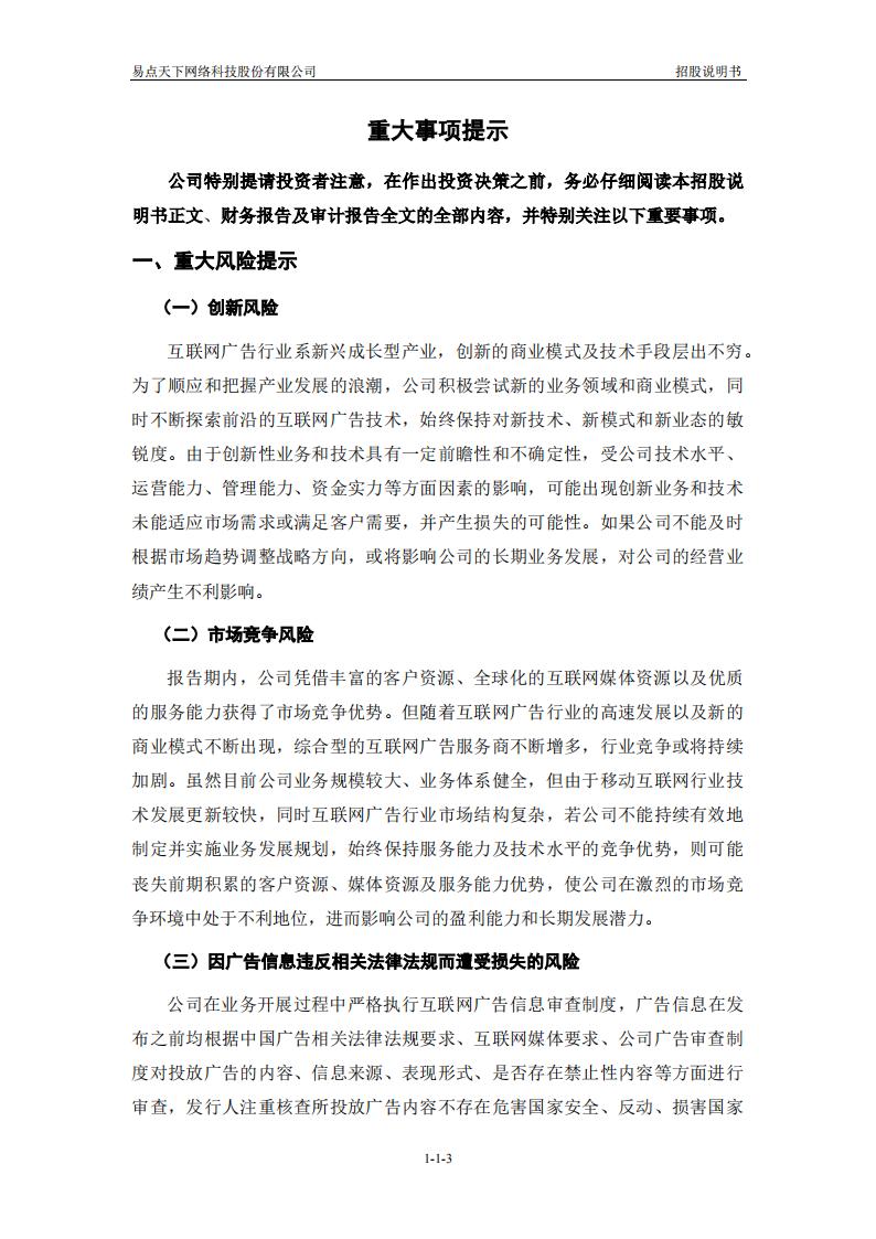 易点天下创业板IPO上市招股说明书:三年营收近70亿,申请2年无进展.pdf