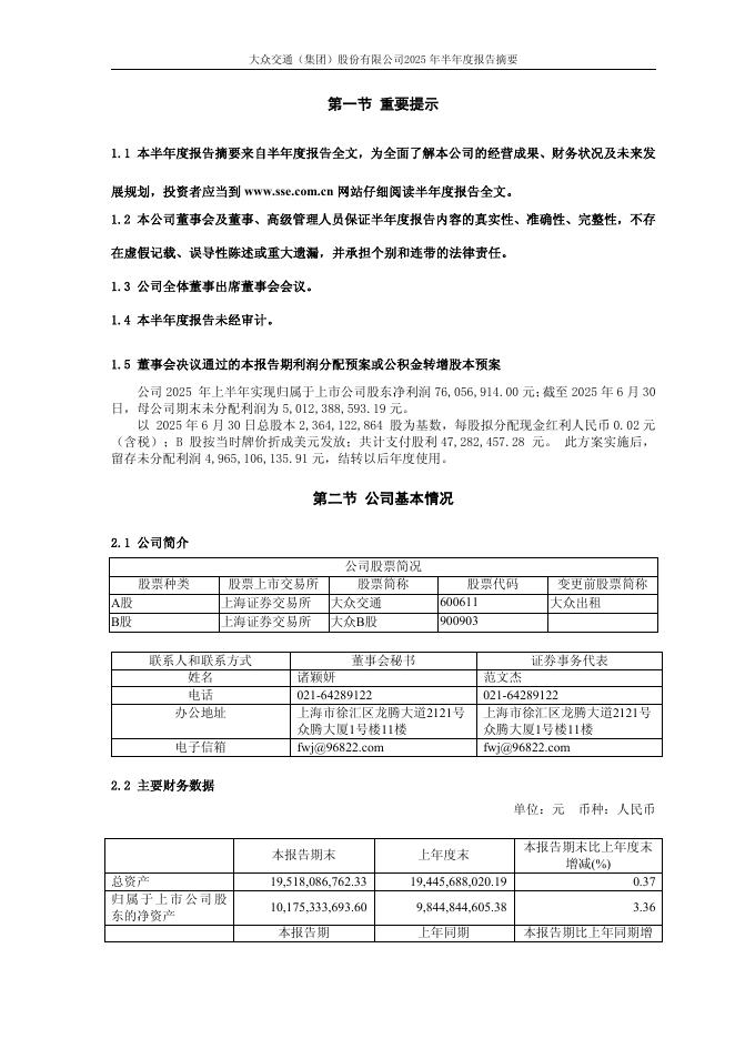 600611-大众交通:大众交通(集团)股份有限公司2025年半年度报告.pdf