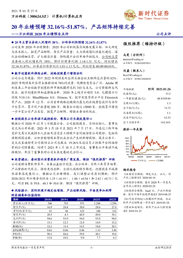 新时代证券:万兴科技2020年业绩预告点评:20年业绩预增32.16%-51.87%,产品矩阵持续完善.pdf