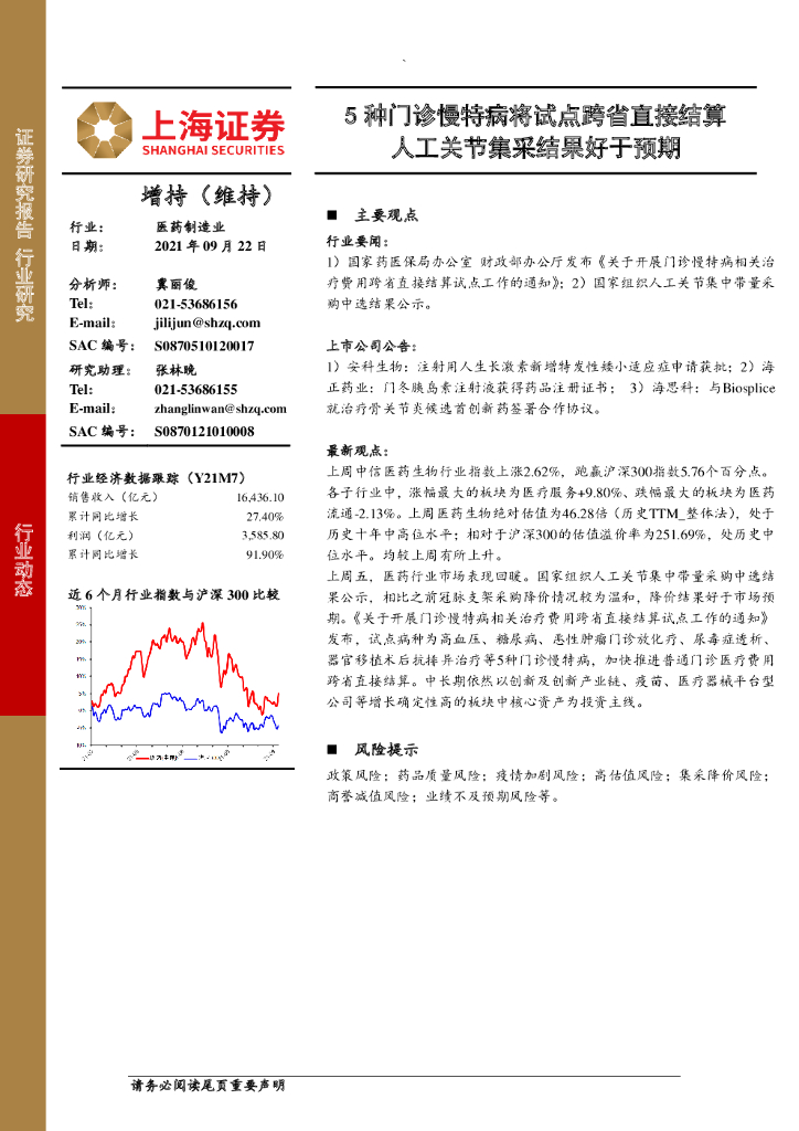 上海证券:医药制造业:5种门诊慢特病将试点跨省直接结算 人工关节集采结果好于预期.pdf