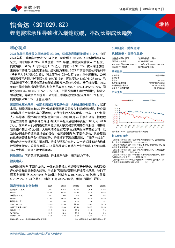 国信证券:怡合达(301029)-锂电需求承压导致收入增速放缓,不改长期成长趋势.pdf