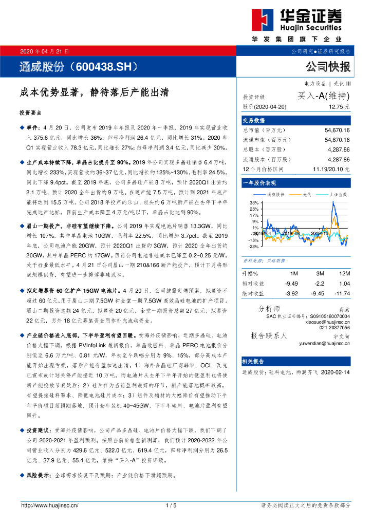 华金证券:通威股份(600438)-成本优势显著,静待落后产能出清.pdf