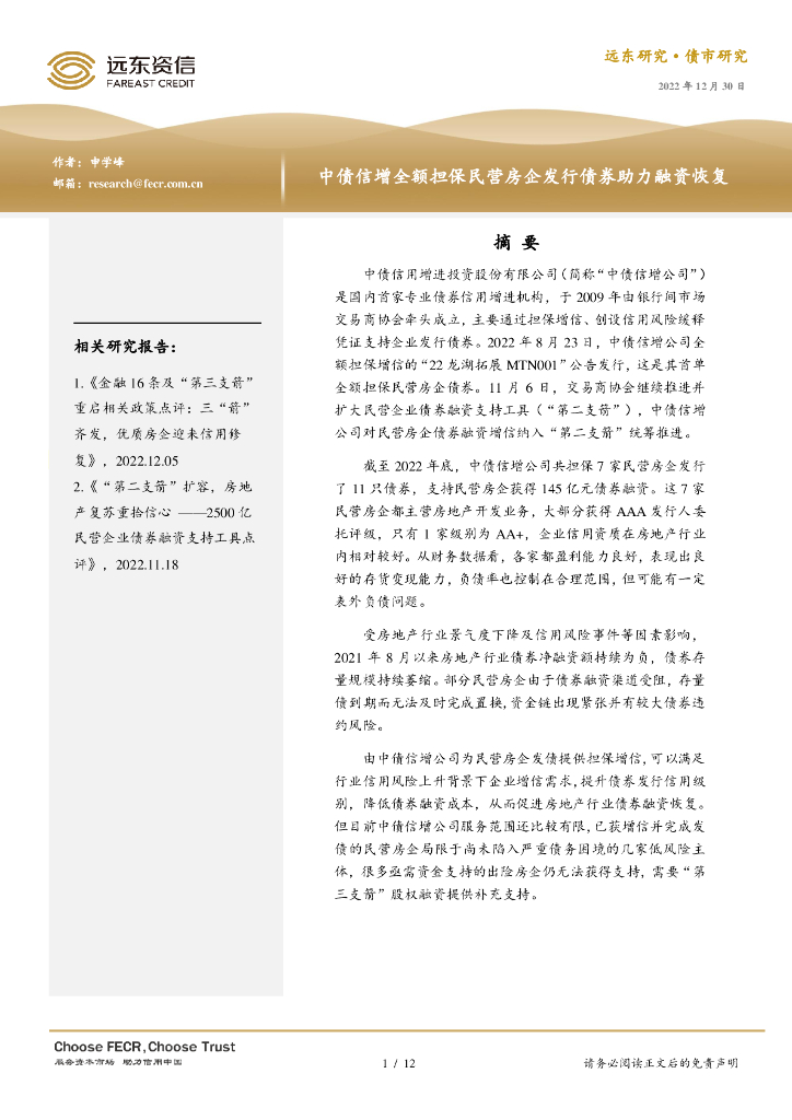 远东资信:中债信增担保民营房企发行债券助力融资恢复.pdf