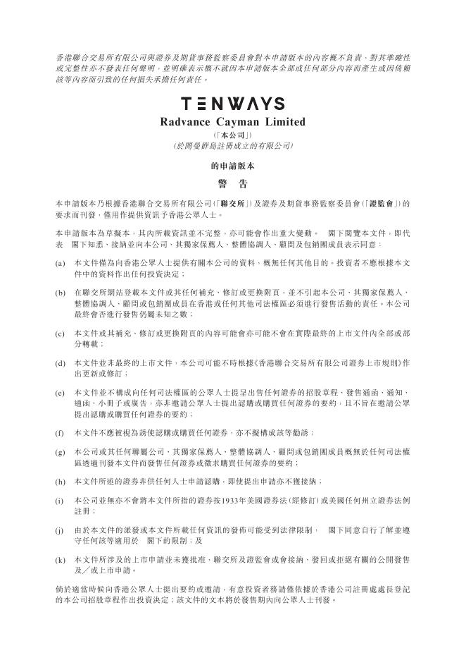 Radvance Cayman Limited港交所IPO上市招股说明书:欧洲电助力自行车品牌TENWAYS的母公司.pdf