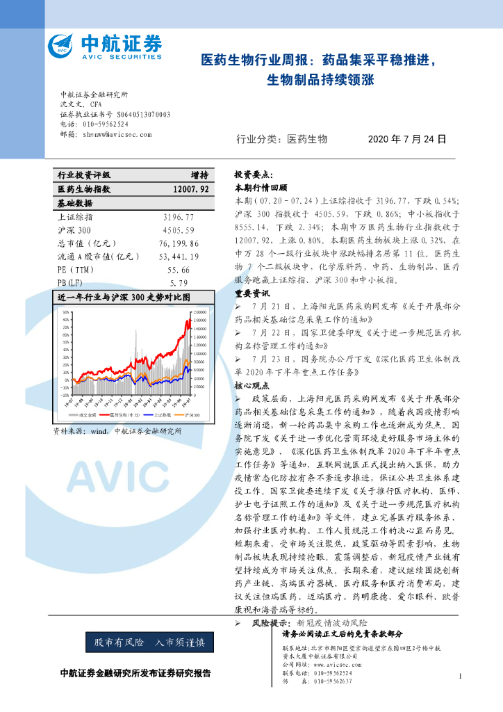 中航证券:医药生物行业周报:药品集采平稳推进,生物制品持续领涨.pdf