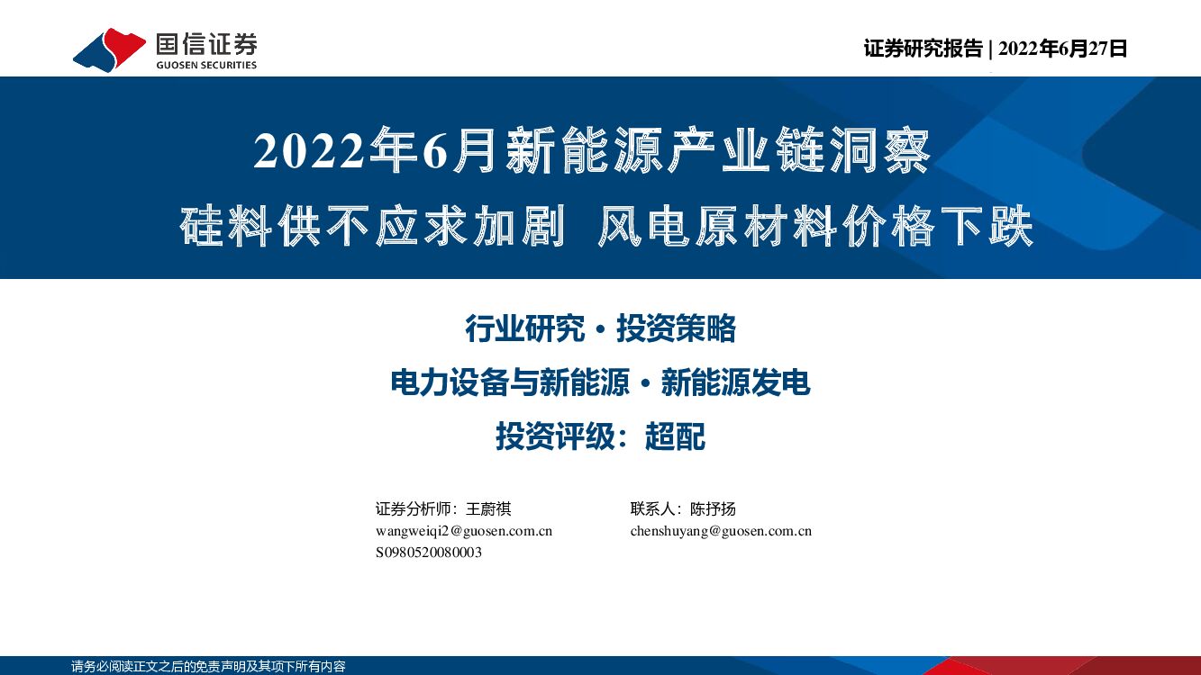 国信证券:2022年6月新能源产业链洞察:硅料供不应求加剧 风电原材料价格下跌.pdf