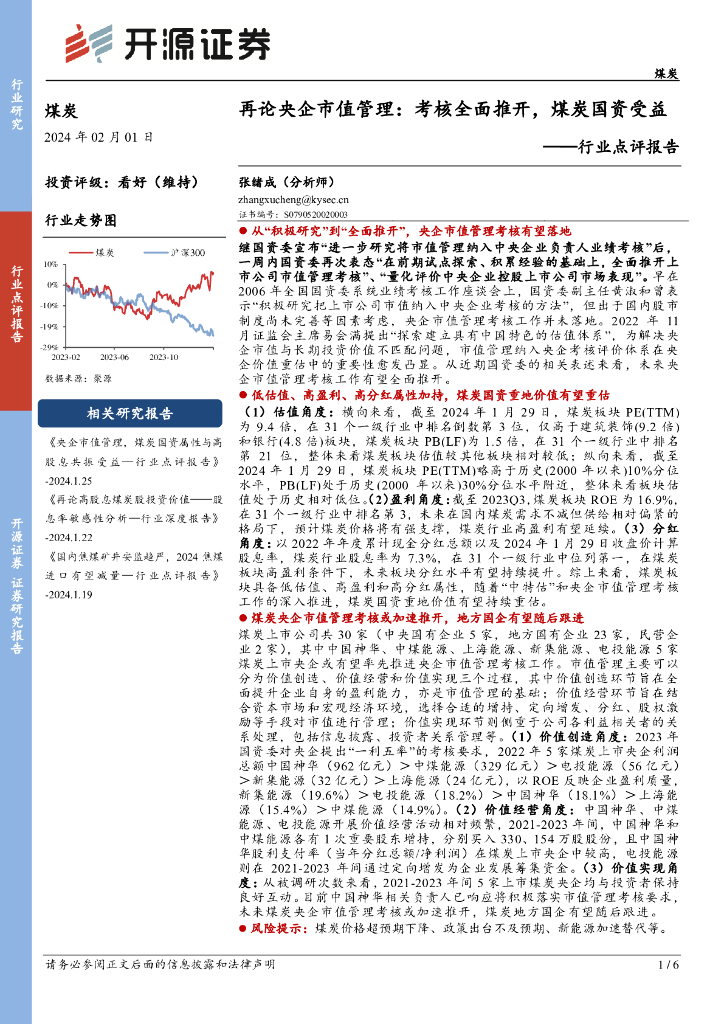 开源证券:煤炭行业点评报告:再论央企市值管理:考核全面推开,煤炭国资受益.pdf
