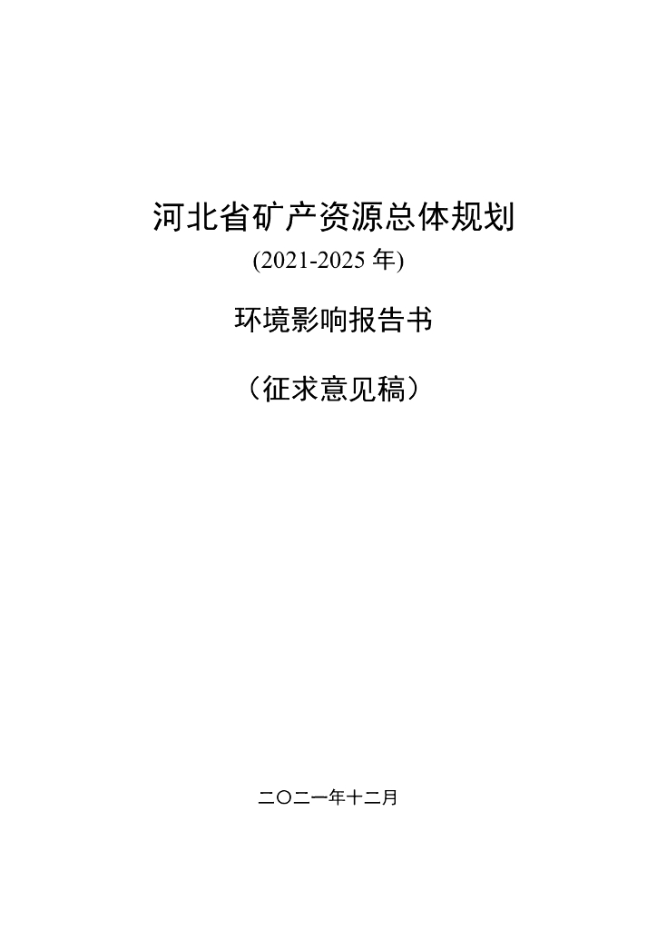 河北省矿产资源总体规划(2021-2025年)环境影响报告书(征求意见稿).pdf