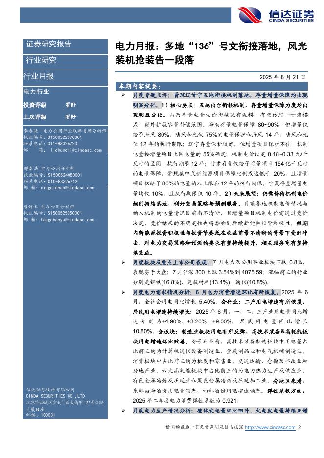 信达证券:电力月报:多地“136”号文衔接落地,风光装机抢装告一段落.pdf