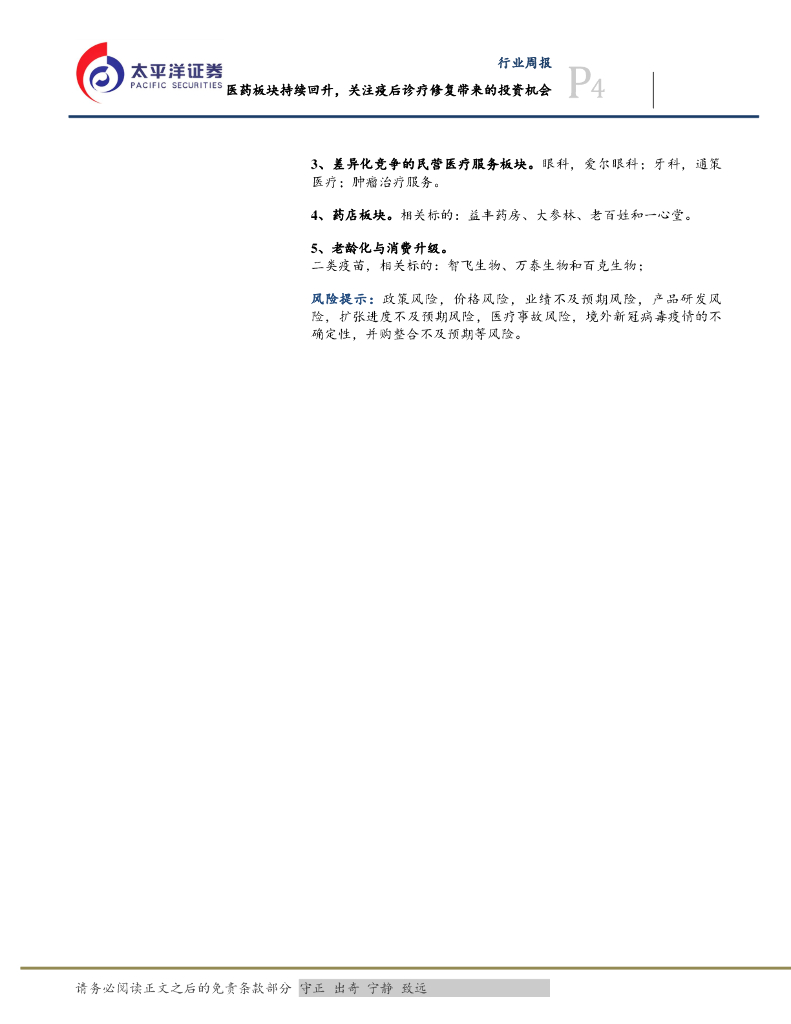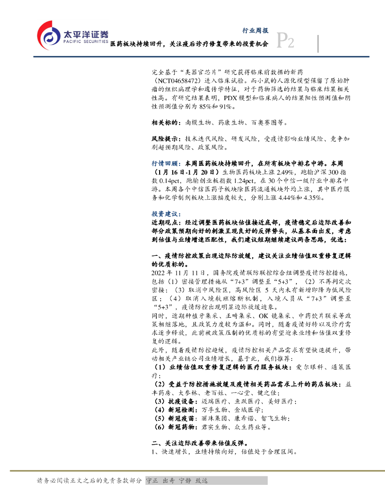 太平洋证券:医药行业周报:医药板块持续回升,关注疫后诊疗修复带来的投资机会.pdf