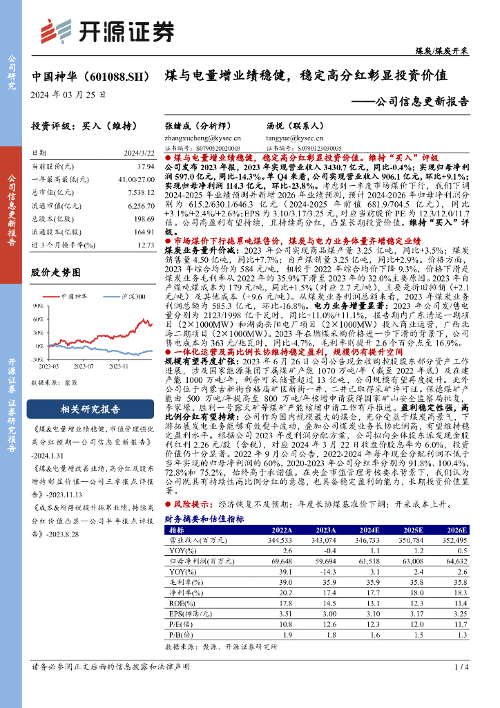开源证券:中国神华(601088)-公司信息更新报告:煤与电量增业绩稳健,稳定高分红彰显投资价值.pdf