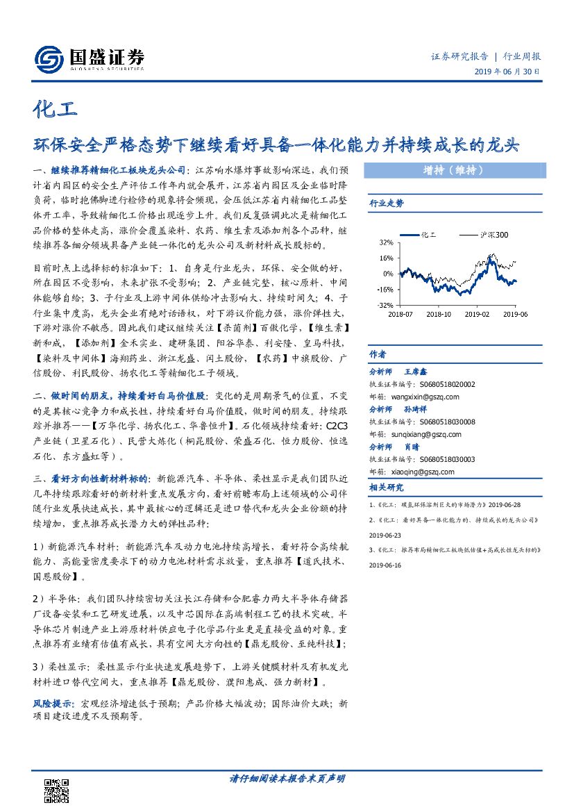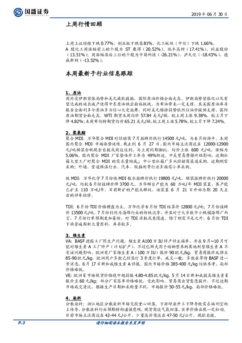 国盛证券:化工行业周报:环保安全严格态势下继续看好具备一体化能力并持续成长的龙头.pdf