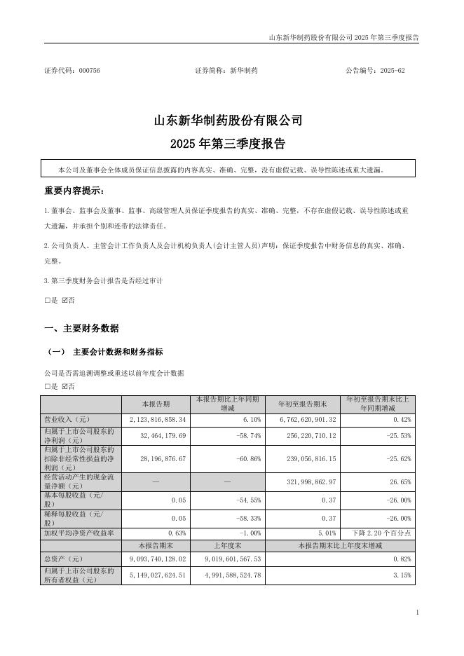 000756-新华制药:2025年三季度报告.pdf