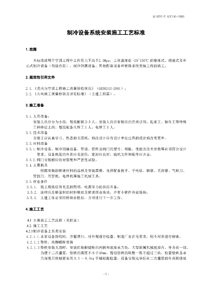 制冷设备系统安装施工工艺标准.doc
