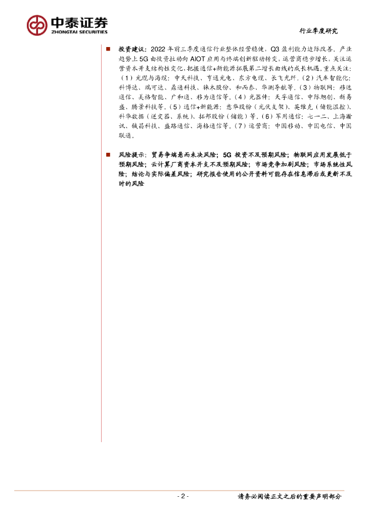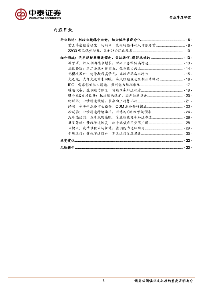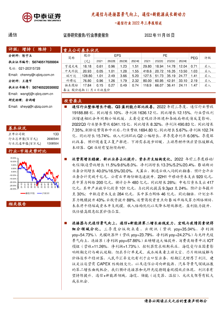 中泰证券:通信行业2022年三季报综述:光通信与连接器景气向上,通信+新能源成长新动力.pdf