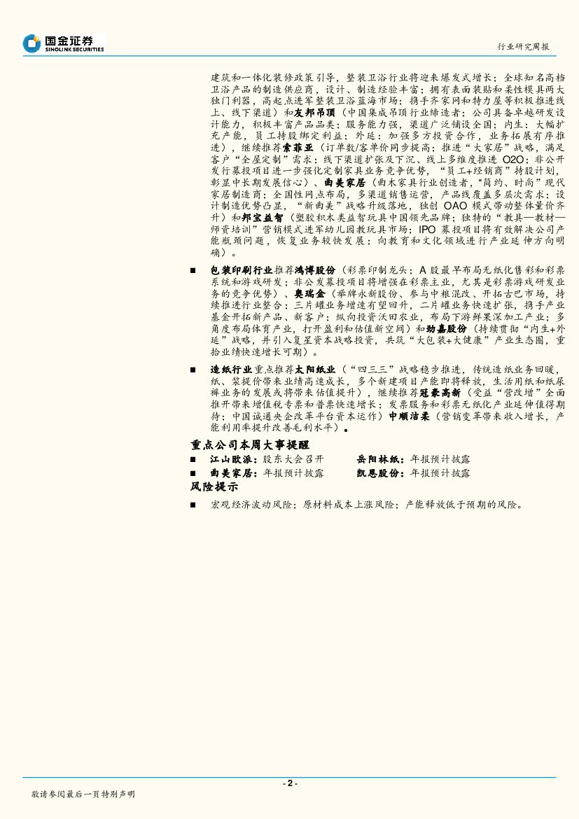 国金证券:轻工造纸研究周报:维持造纸和家居板块重点推荐.pdf