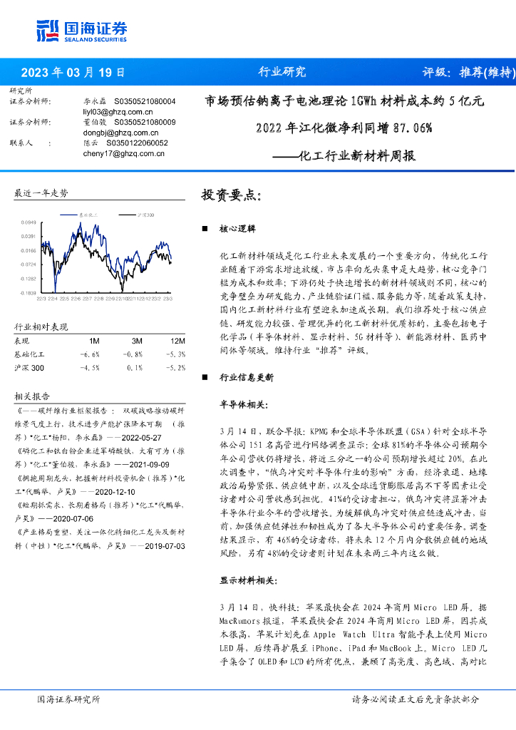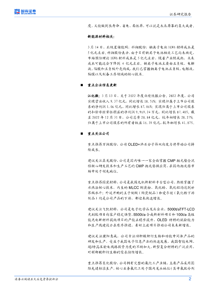 国海证券:化工行业新材料周报:市场预估钠离子电池理论1GWh材料成本约5亿元 2022年江化微净利同增87.06%.pdf