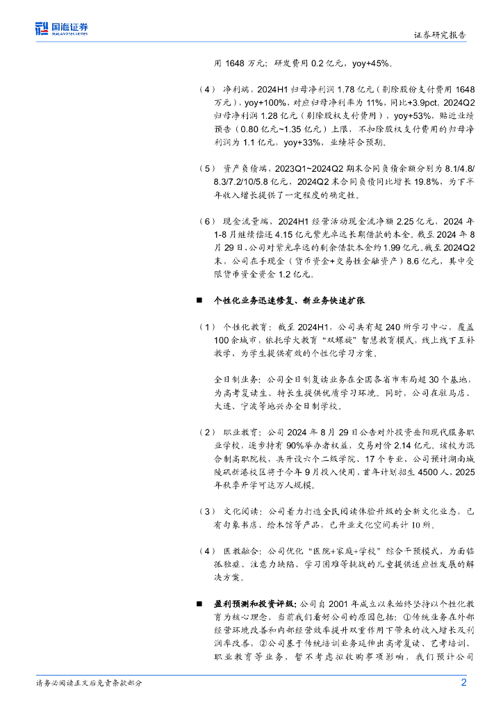 国海证券:学大教育(000526)-公司动态研究:2024Q2业绩符合预期,高职并购再下一城.pdf