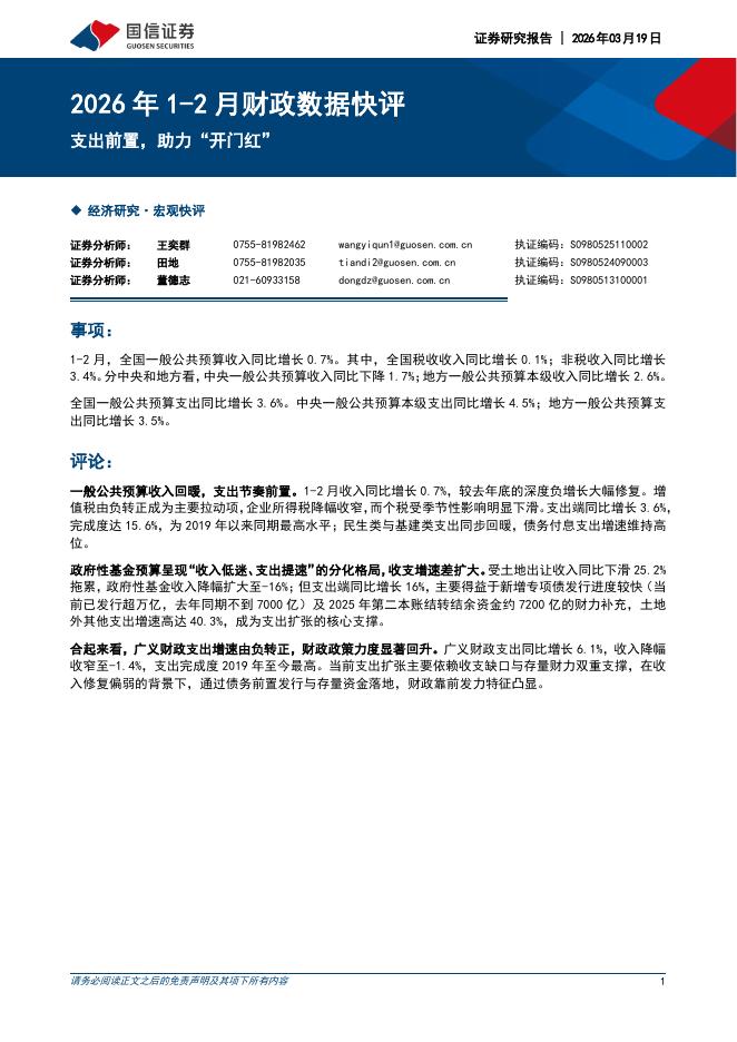 国信证券:2026年1-2月财政数据快评:支出前置,助力“开门红”-260320.pdf