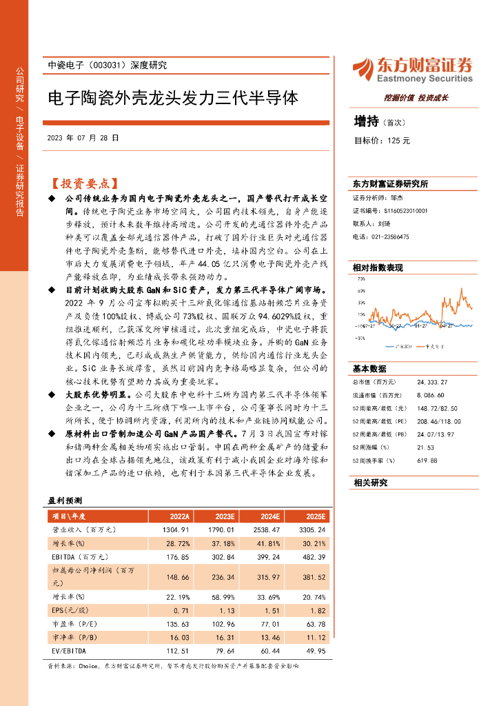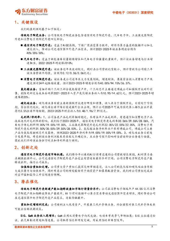 东方财富证券:中瓷电子(003031)-深度研究:电子陶瓷外壳龙头发力三代半导体.pdf