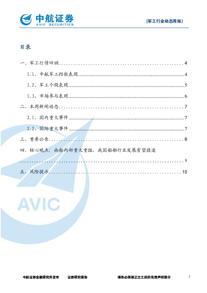 中航证券:军工行业动态周报:南船内部重大重组,我国船舶行业发展有望提速.pdf