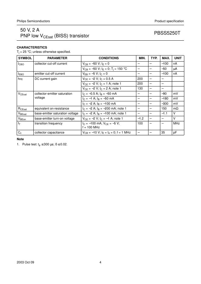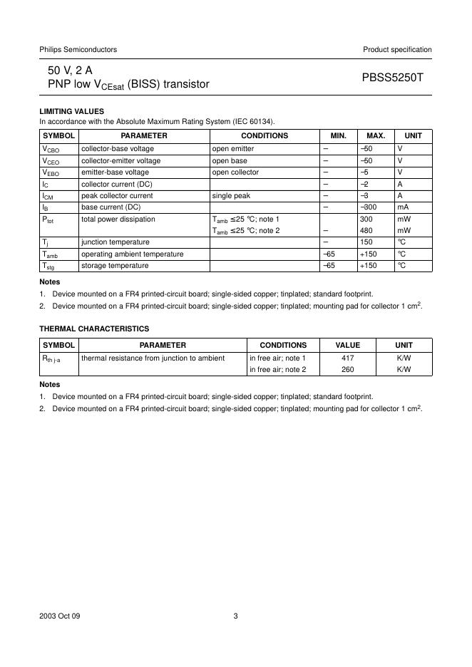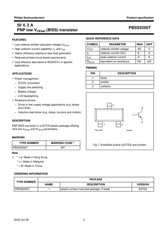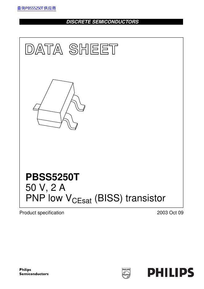 philips PBSS5250T 50 V, 2 A PNP low VCEsat (BISS) transistor 数据手册.pdf
