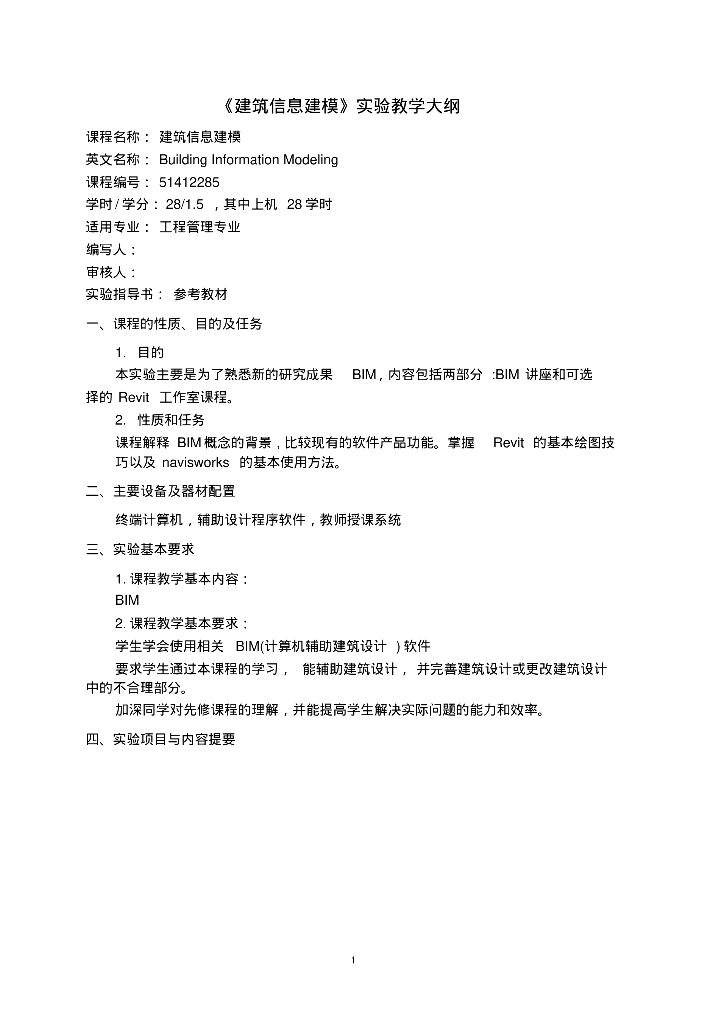 BIM大纲《建筑信息建模》实验教学大纲.pdf