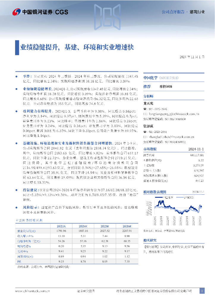 中国银河:中国化学(601117)-业绩稳健提升,基建、环境和实业增速快.pdf