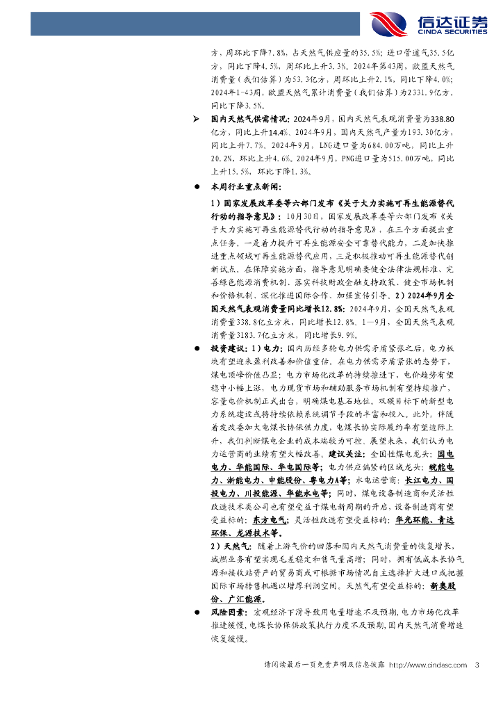 信达证券:公用事业—电力天然气周报:六部门发文大力实施可再生能源替代行动,9月全国天然气表观消费量同比增长12.8%.pdf