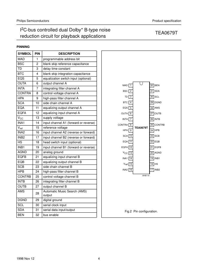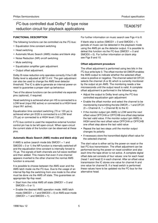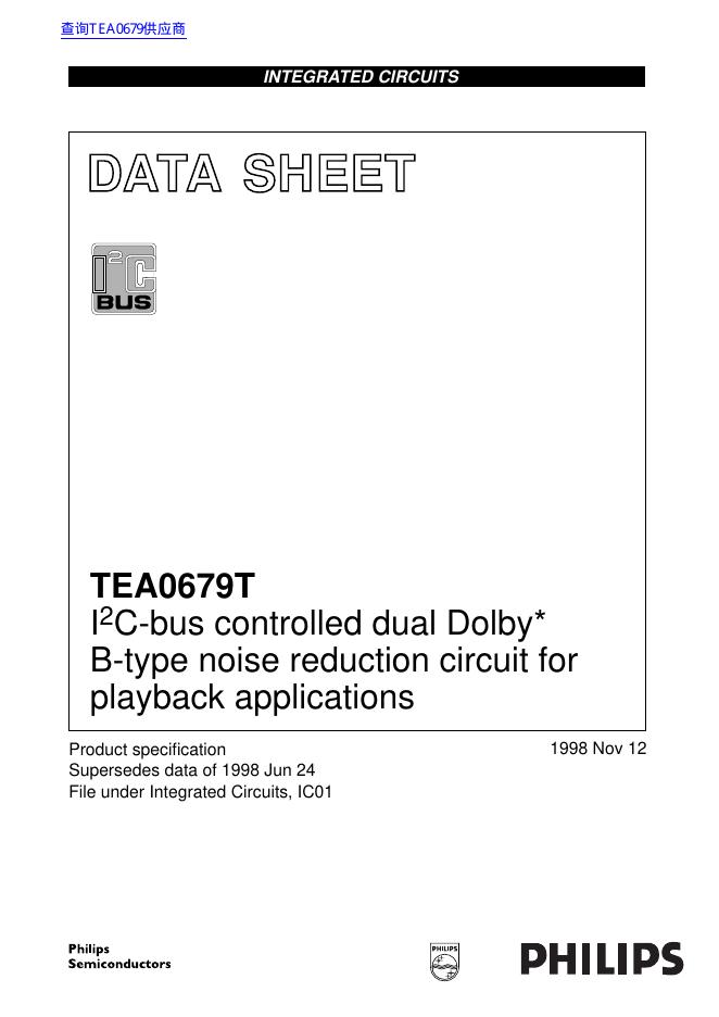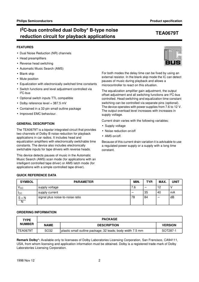 PHILIPS TEA0679T I 2 C-bus controlled dual Dolby* B-type noise reduction circuit for playback applications 数据手册.pdf