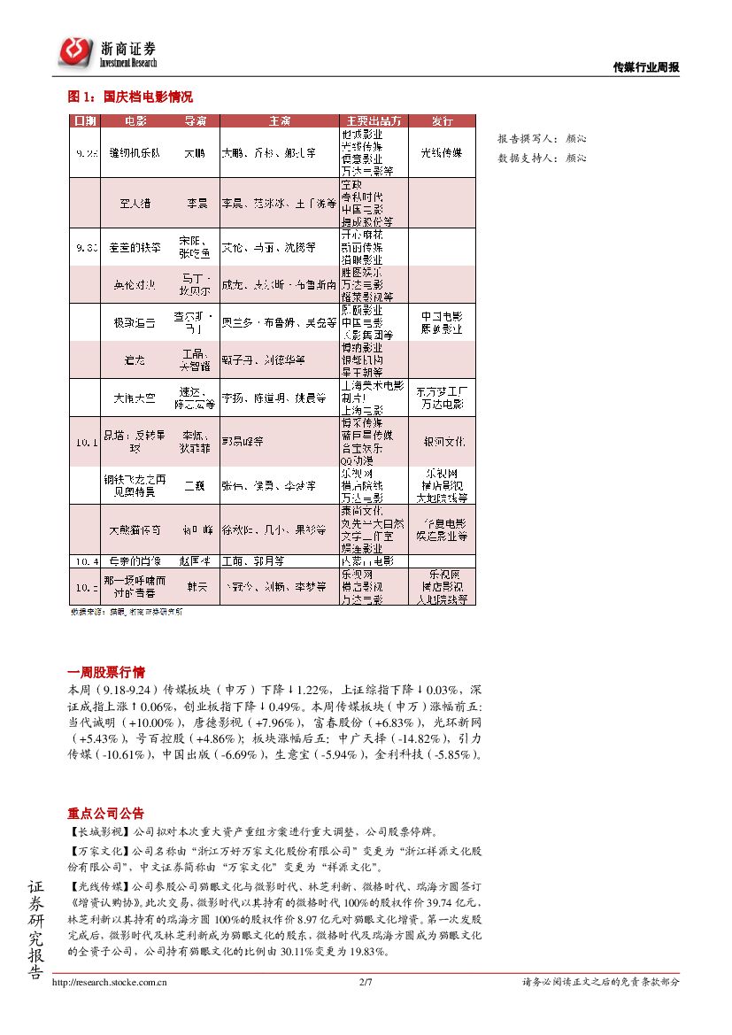 国信证券:传媒互联网行业周报:9月游戏版号发放、国庆档来临,持续看好游戏及影视行业机会