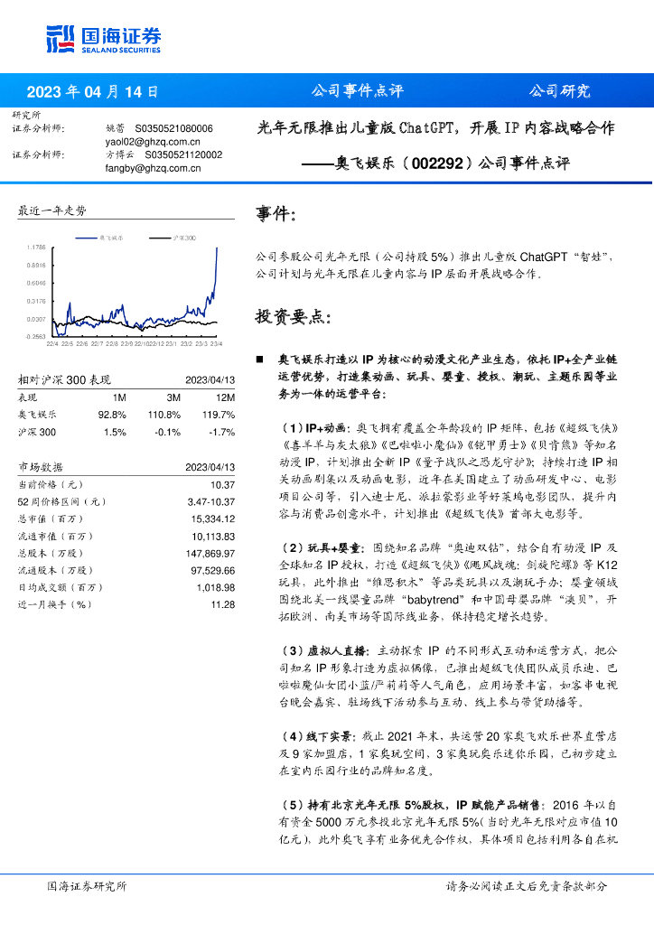国海证券:奥飞娱乐(002292)-公司事件点评:光年无限推出儿童版ChatGPT,开展IP内容战略合作.pdf