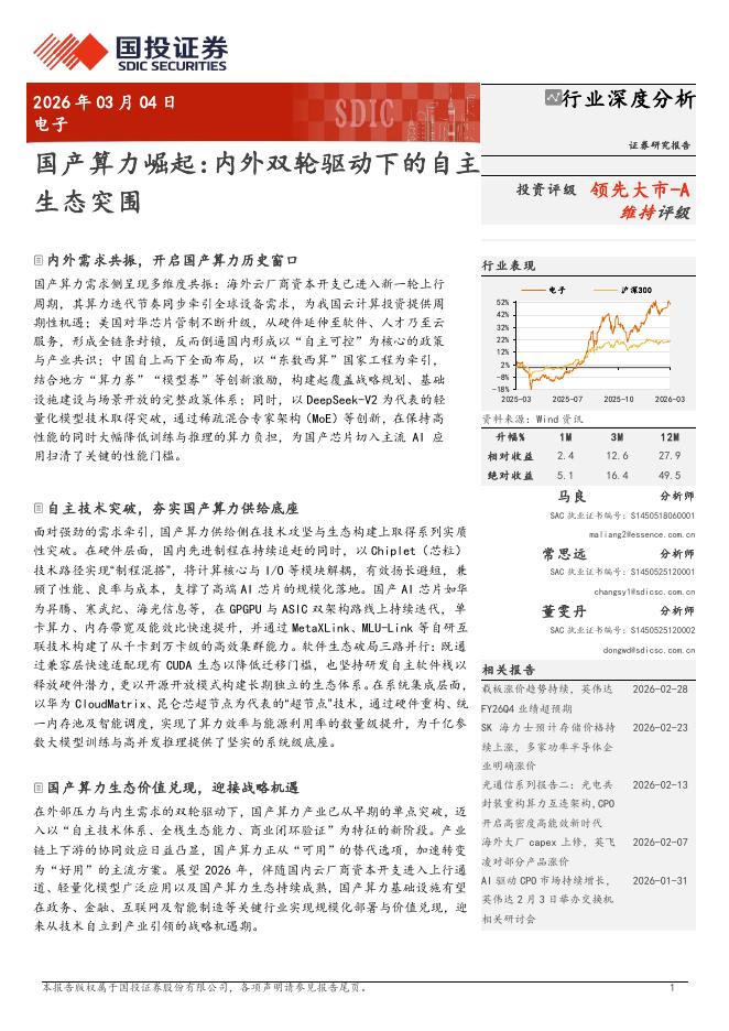 国投证券:国产算力崛起,内外双轮驱动下的自主生态突围.pdf