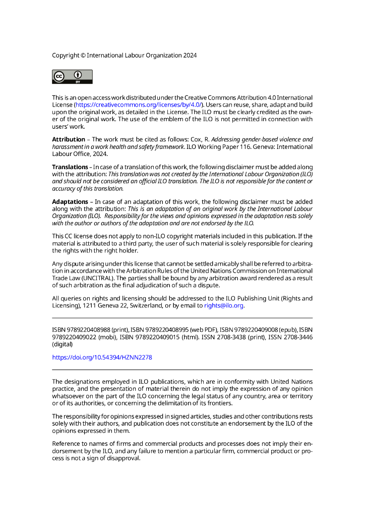 国际劳工组织(ILO):2024在工作保健和安全框架内解决基于性别的暴力和骚扰问题报告(英文版).pdf