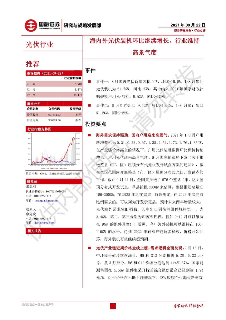 国融证券:光伏行业:海内外光伏装机环比继续增长,行业维持高景气度.pdf