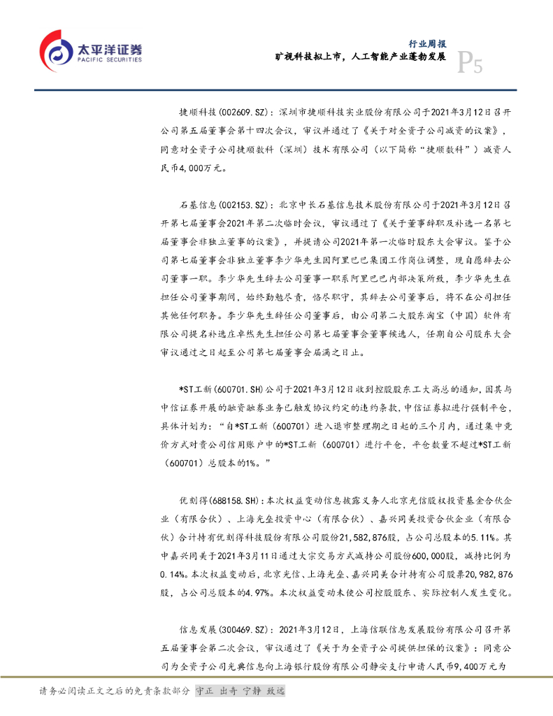 太平洋证券:信息行业周报:旷视科技拟上市,人工智能产业蓬勃发展.pdf