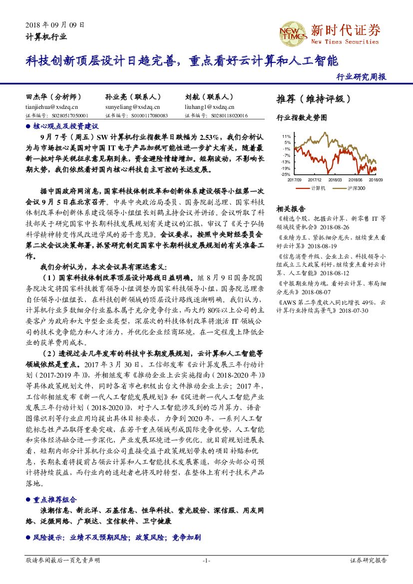 新时代证券:计算机行业研究周报:科技创新顶层设计日趋完善,重点看好云计算和人工智能.pdf